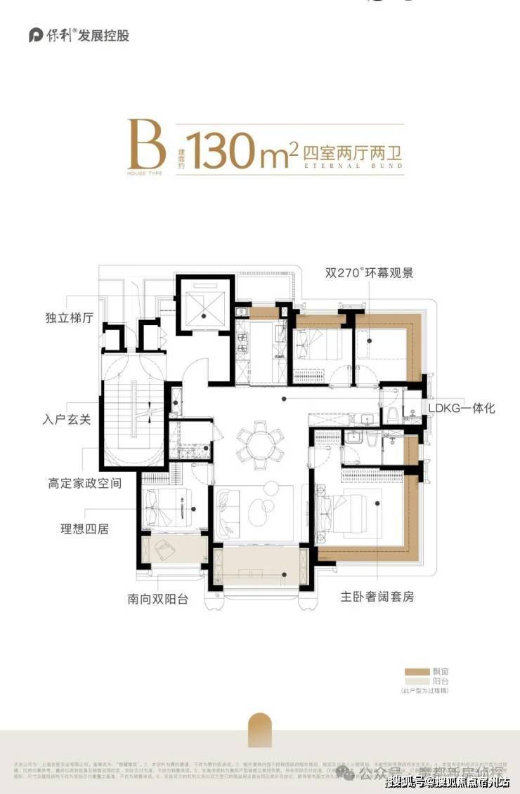 但事实上,保利外滩曜建面约130㎡的实际使用率做到了约94%,双阳台+双约270°视野+一梯一户独立电梯厅+多飘窗。